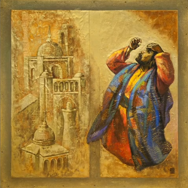 The following artwork is part of a series of 56 paintings on biblical themes by Kazakh artist Nelly Bube (born 1949):