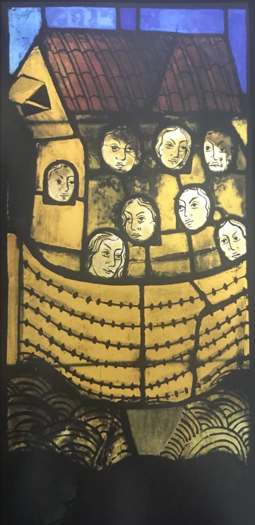The following is a stained glass window from the Three choir windows in the Marienkirche, Frankfurt (Oder), Germany, of the 14th century, depicting Noah’s ark