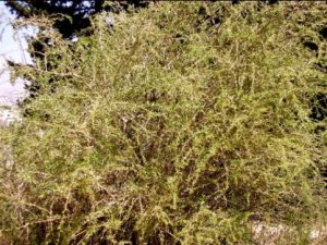 In the fable of the trees in Judges 9:14, all the trees come to ‘atad (in English Bible translations: thornbush or bramble) and ask it to become their king. Most scholars have generally agreed that this is probably a reference to the Boxthorn Lycium europaeum. Zohary (Plants of the Bible, Cambridge University Press, 1982) holds that it is more likely the Christ Thorn Ziziphus spina-christi. Both are thorny trees that are plentiful in the Near East, especially near Samaria in northern Israel, where Jotham, the teller of the fable, lived. The name “Christ thorn” (French couronne-du-Christ) reflects the tradition that this tree must also have been the source of the thorns that are referred to in the account of Christ’s crucifixion. The topic is widely debated, and there is little to confirm whether the “crown of thorns” came from this tree, or from one of many other prickly plants such as the thorny burnet, which is more common in the Jerusalem area. We advocate the majority opinion here, which is boxthorn (French lycie d’Europe).
